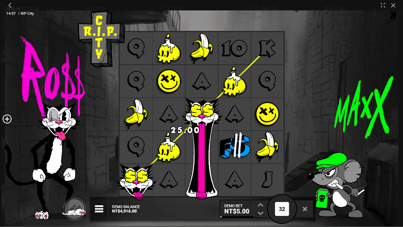 好識多老虎機攻略專區中《安息之城》被歸類為中高波動 × 紅利主導型×擴展Wild核心機種代表作,由QT電子 打造,本作以街頭塗鴉美術風格融合貓鼠對抗題材,營造出強烈動態張力與視覺衝擊,整體採用 5×5 輪盤×19條固定支付線架構,盤面空間大、Wild覆蓋效率高,特別適合搭配倍數堆疊與免費遊戲爆發。理論最高中獎可達12,500 倍。
